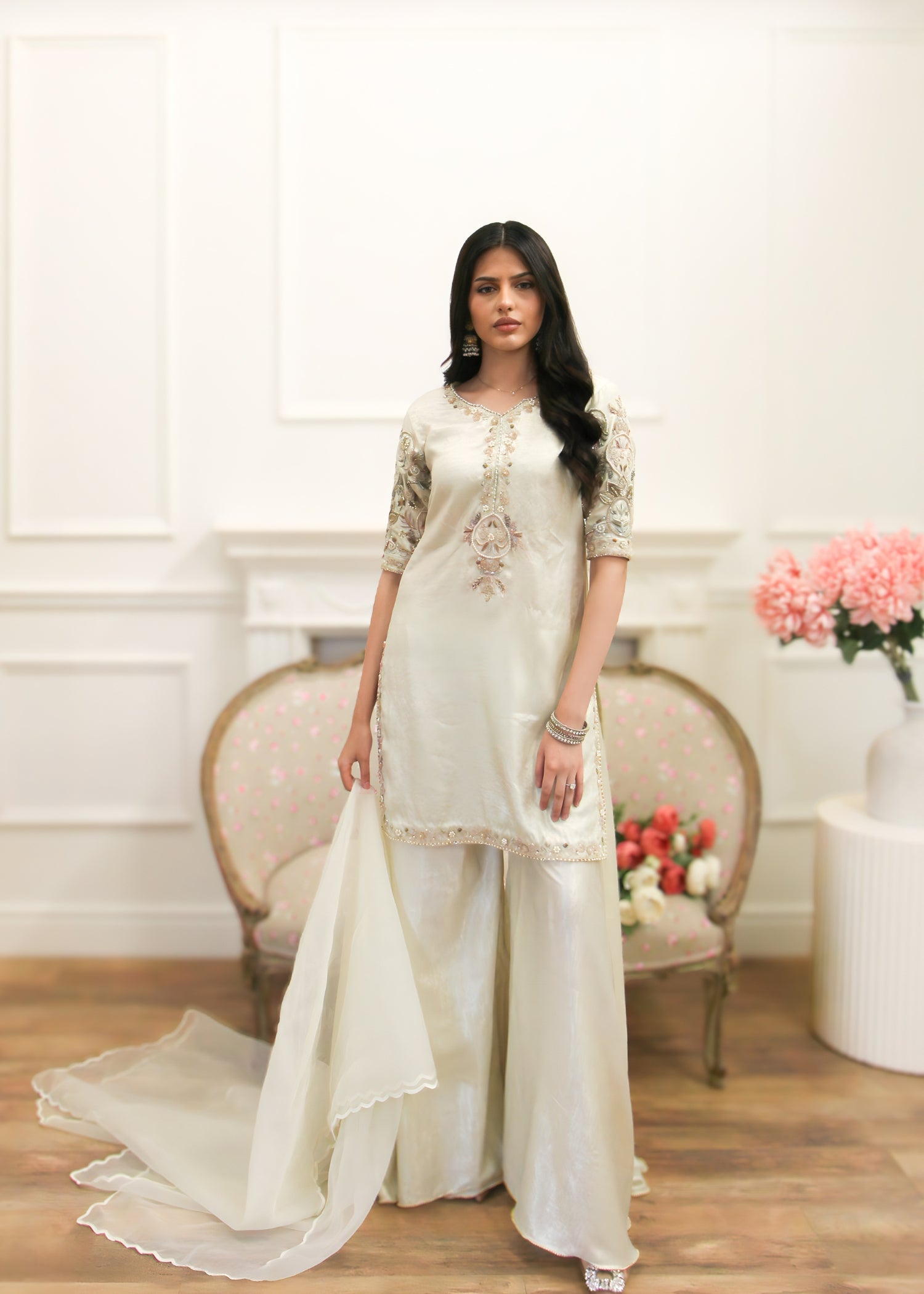 Fully hand-embellished with intricate zardozi work